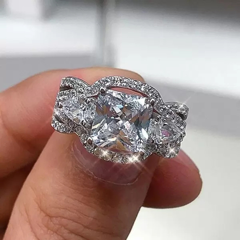 خواتم نسائية أوروبية وأمريكية جديدة مرصعة بالألماس المربع ومجوهرات الزركون بالجملة