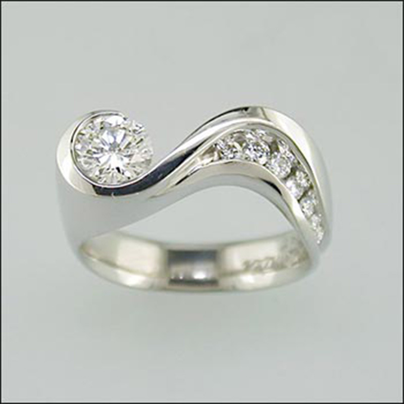 خاتم بلاتيني جديد بسيط على شكل موجة أوروبي وأمريكي خاتم مرصع بالألماس والزركون للبيع بالجملة