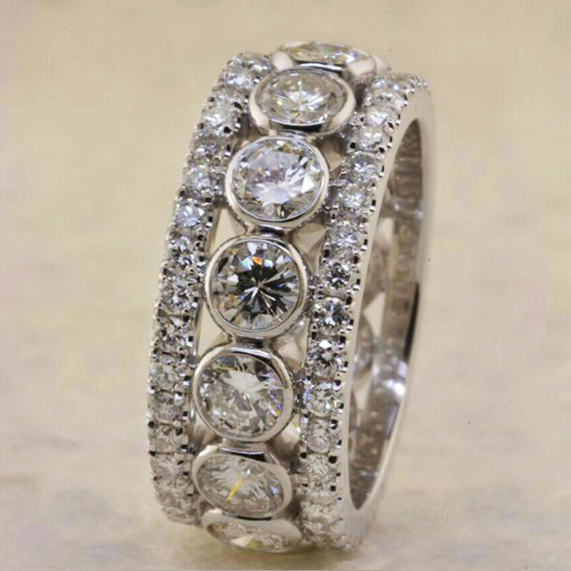 خاتم خطوبة نسائي أوروبي وأمريكي جديد رائع مرصع بالألماس والزركون الدائري خاتم خطوبة عصري للنساء