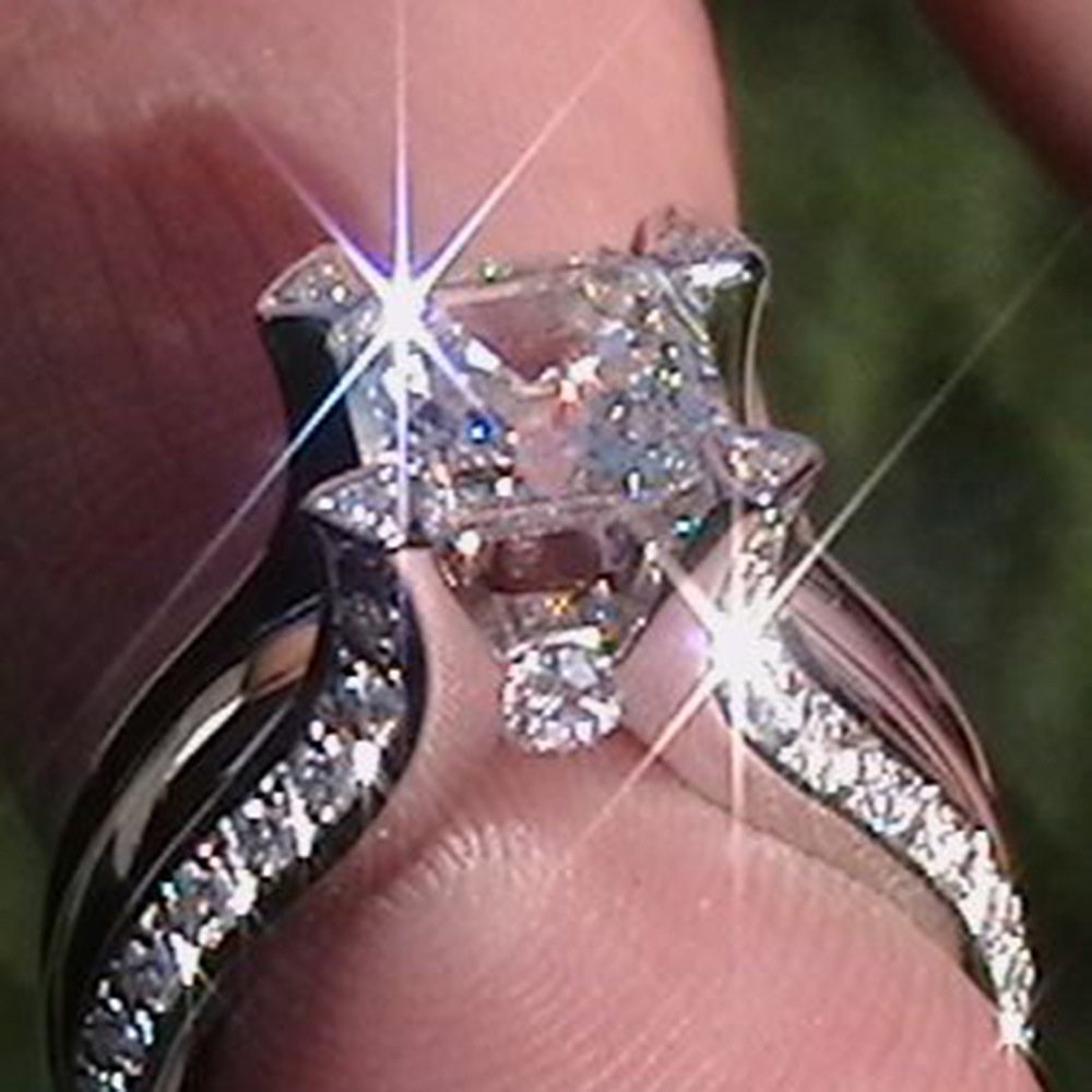 بث مباشر للمجوهرات الجديدة الأوروبية والأمريكية خاتم الخطوبة الزركون اللامع للغاية خاتم اقتراح عيد الحب بالجملة