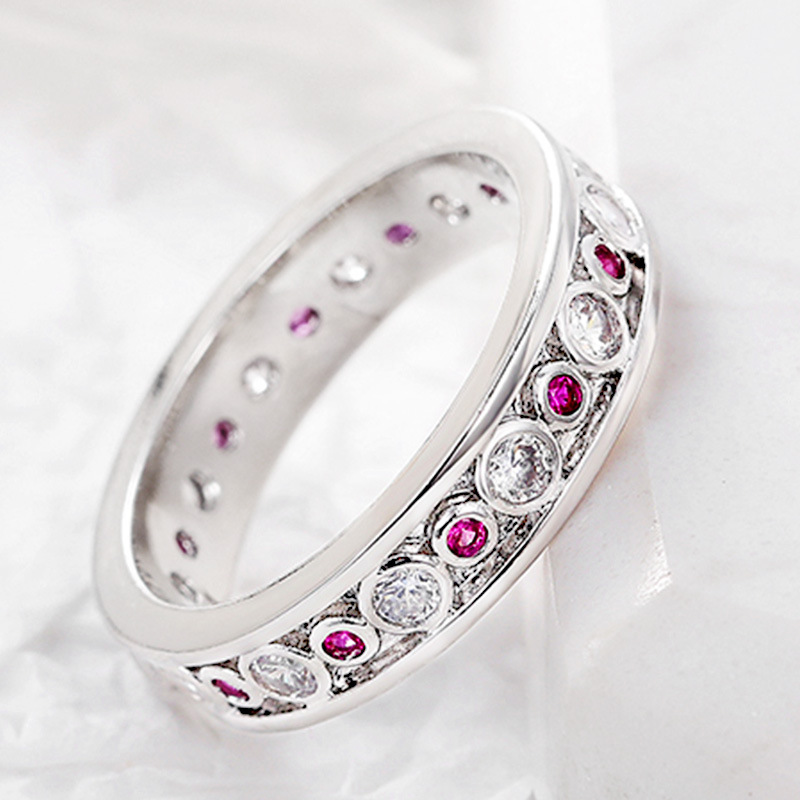 خاتم نسائي بسيط مطلي بالبلاتين خاتم مايكرو سيت أنيق للاحتفال بالذكرى السنوية مجوهرات متطابقة