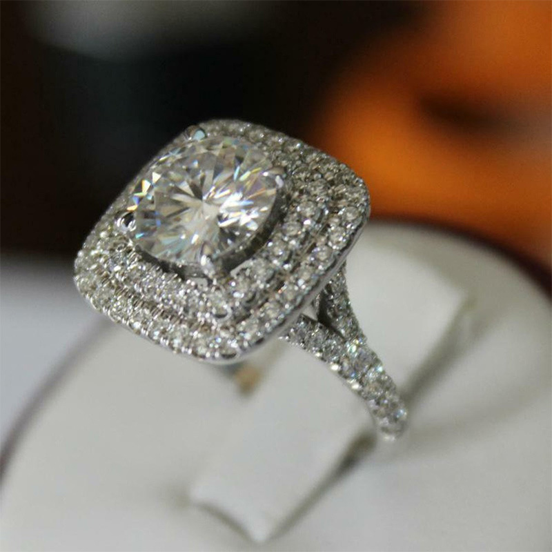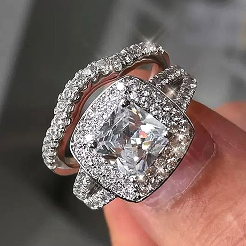 خاتم جديد أنيق لشخصية مربعة من الزركون والبلاتين خاتم خطوبة ماسي بالكامل للنساء