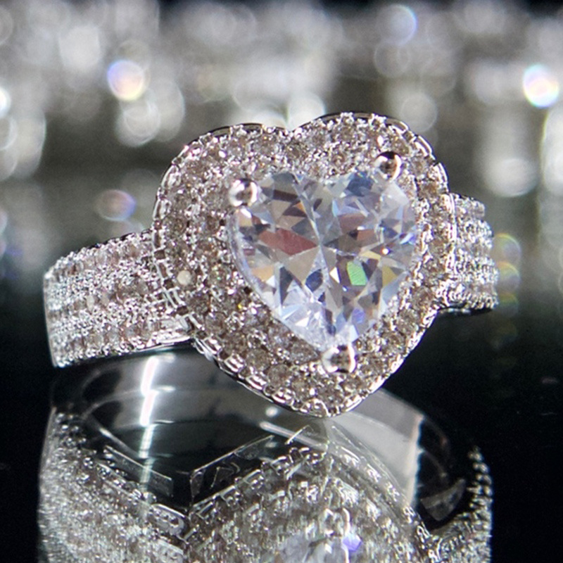 خاتم ألماس عصري أوروبي وأمريكي، خاتم رائع على شكل قلب الحب، خاتم نسائي فائق الوميض من الزركون، إكسسوارات خاتم السيدات