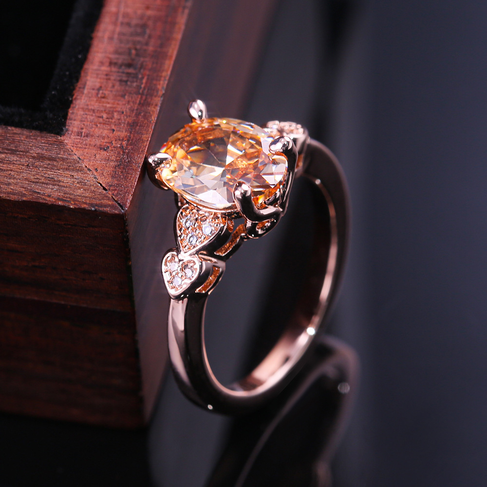 خاتم نسائي أنيق جديد من الزركون بلون الشمبانيا مطلي بالنحاس والذهب الوردي ومجوهرات من الأحجار الكريمة المقلدة