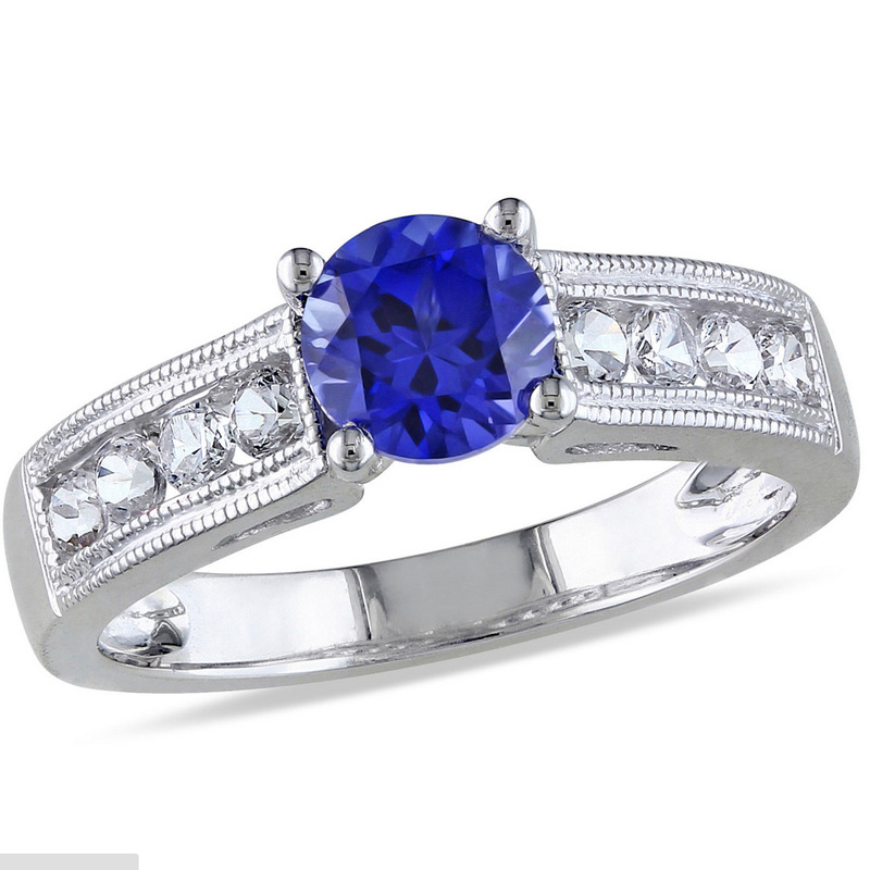 خاتم نسائي أوروبي وأمريكي أنيق عتيق مطلي بالفضة مرصع بأحجار كريمة زرقاء مقلدة