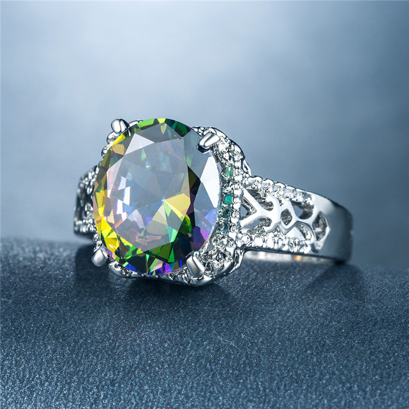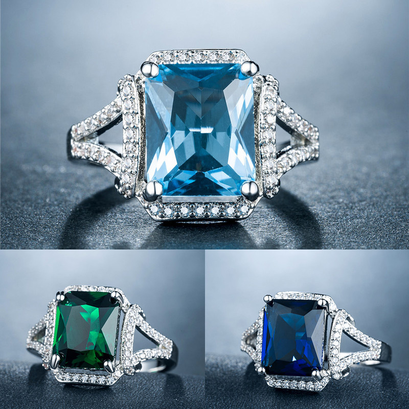 خاتم نسائي أوروبي وأمريكي جديد من الزركون الملون مطلي بالبلاتين مجوهرات عصرية بالجملة