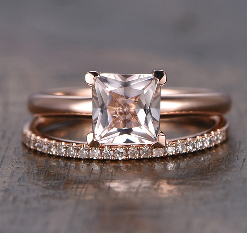 مجموعة خواتم زوجان من الزركون الفاخر الجديد للنساء، خاتم ألماس مربع رائع مطلي بالنحاس والذهب الوردي
