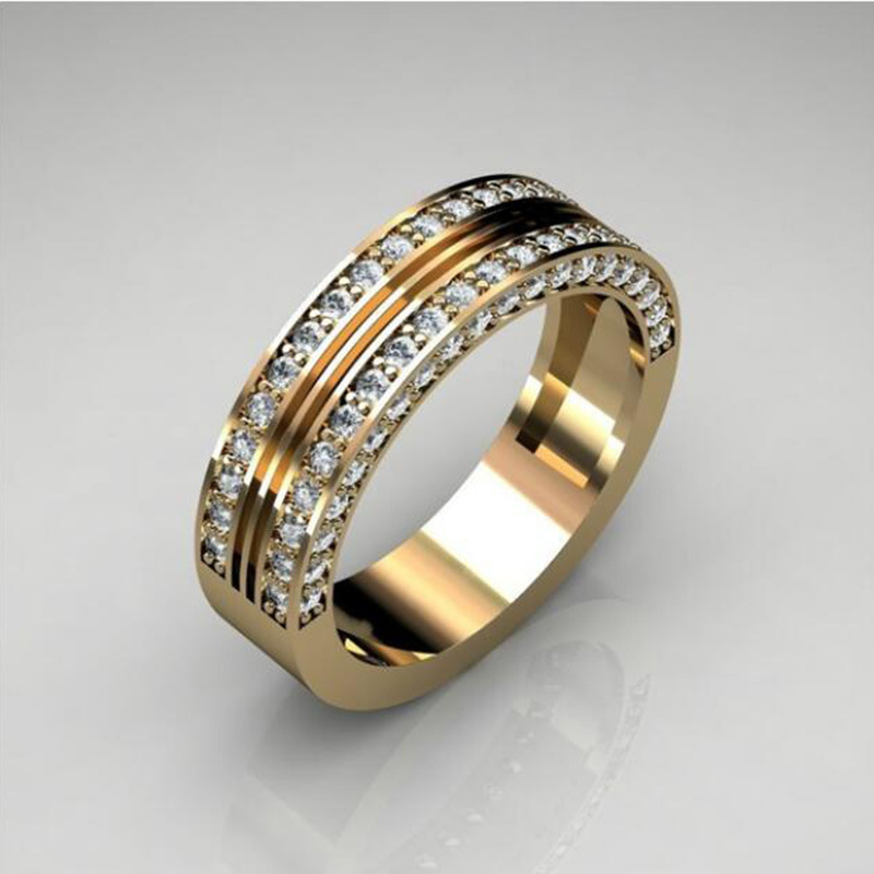 خاتم خطوبة من الزركون مطلي بالذهب عيار 14 قيراطًا الأكثر مبيعًا على الطراز الأوروبي والأمريكي للرجال والنساء
