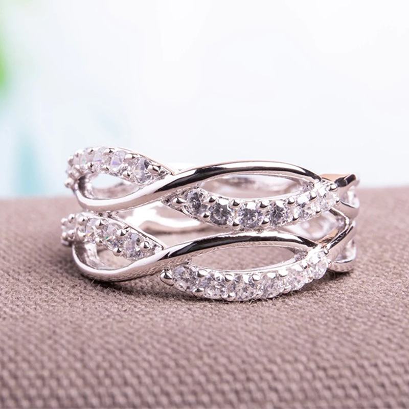 خاتم أوروبي وأمريكي جديد خاتم زركون هندسي بسيط خاتم نسائي فردي معبأ