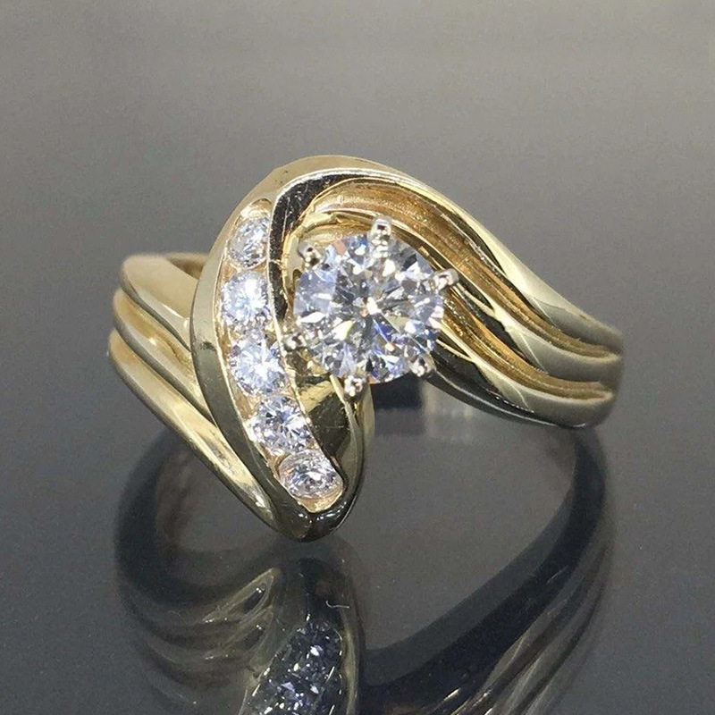 توريد خصيصا الاكسسوارات الجديدة الأوروبية والأمريكية النساء الكلاسيكية خاتم الزفاف خاتم مطلي بالنحاس الذهب الأبيض الزركون