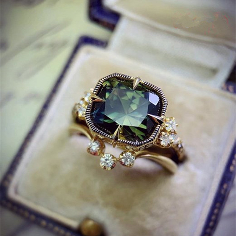مجموعات خواتم الخطوبة الأوروبية والأمريكية الجديدة الأكثر مبيعًا، إكسسوارات سهرة أنيقة فاخرة باللون الأخضر الداكن للزوجين