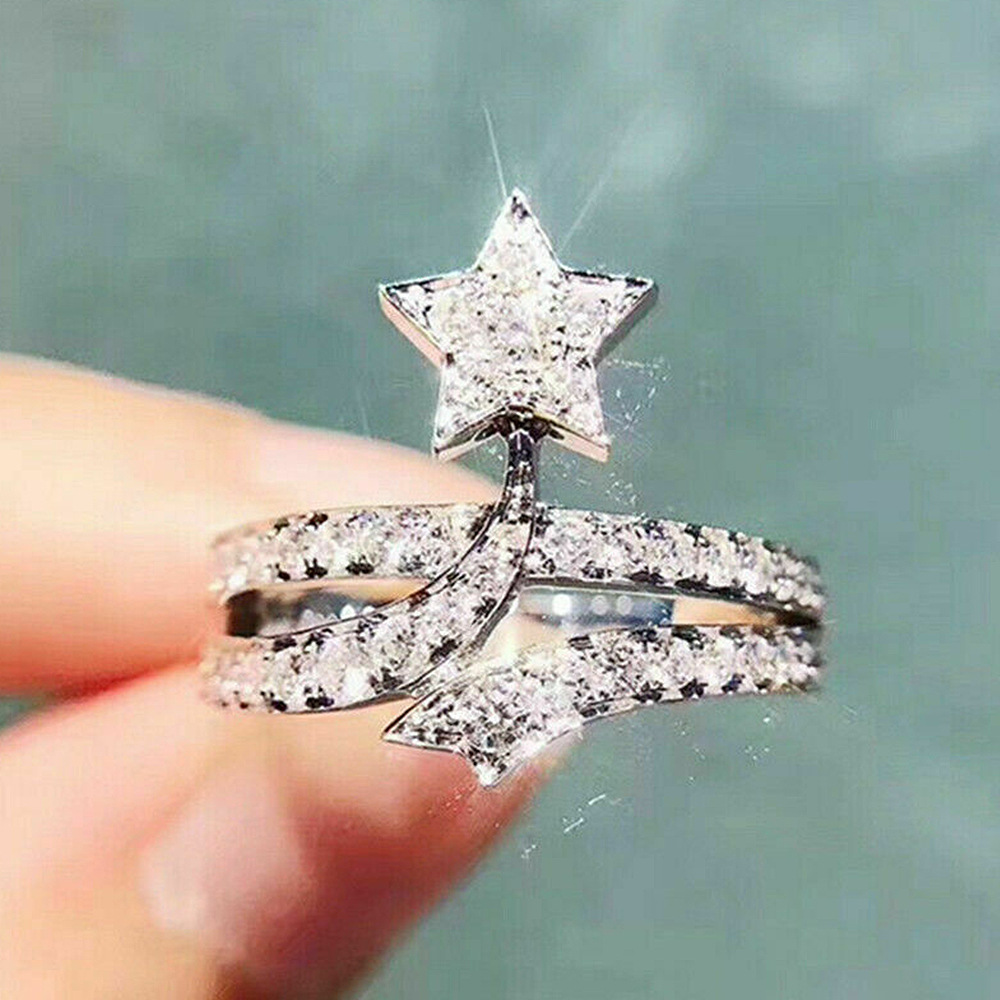 خاتم خطوبة صغير إبداعي من المشاهير على الإنترنت بتصميم ساخن مرصع بخمسة نجوم صغيرة على شكل نجمة أوروبية وأمريكية للنساء