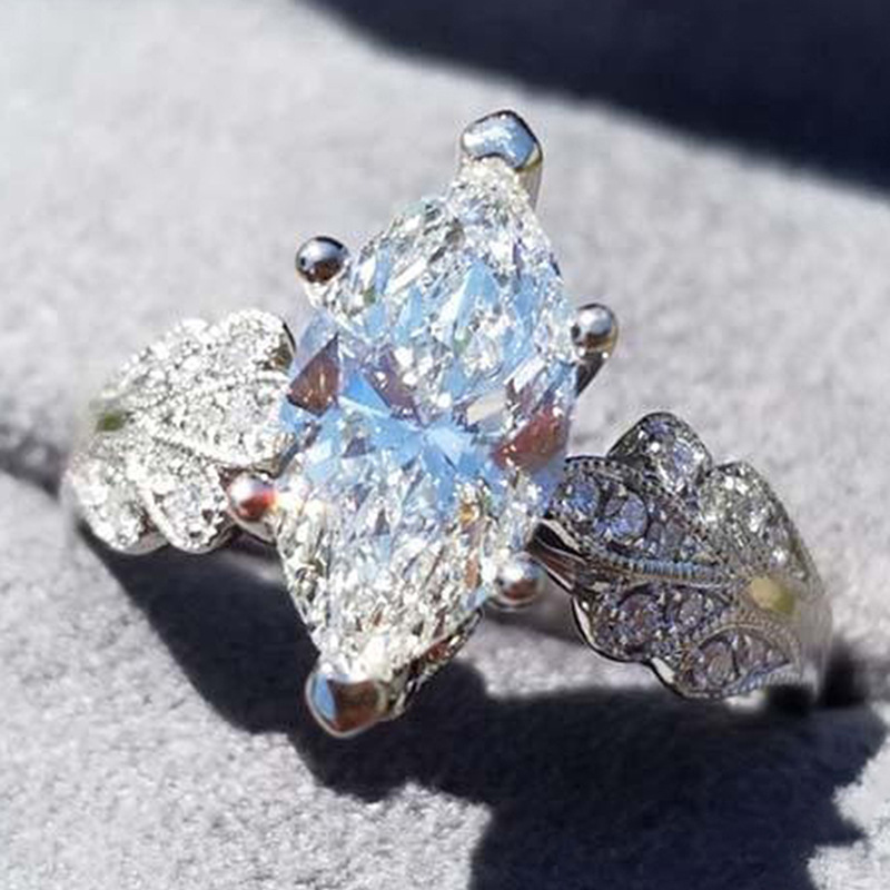 خاتم من الزركون الماركيز المرصع الأكثر مبيعًا على شكل ورقة دانتيل وخاتم زهرة عصري من مصادر أوروبية وأمريكية