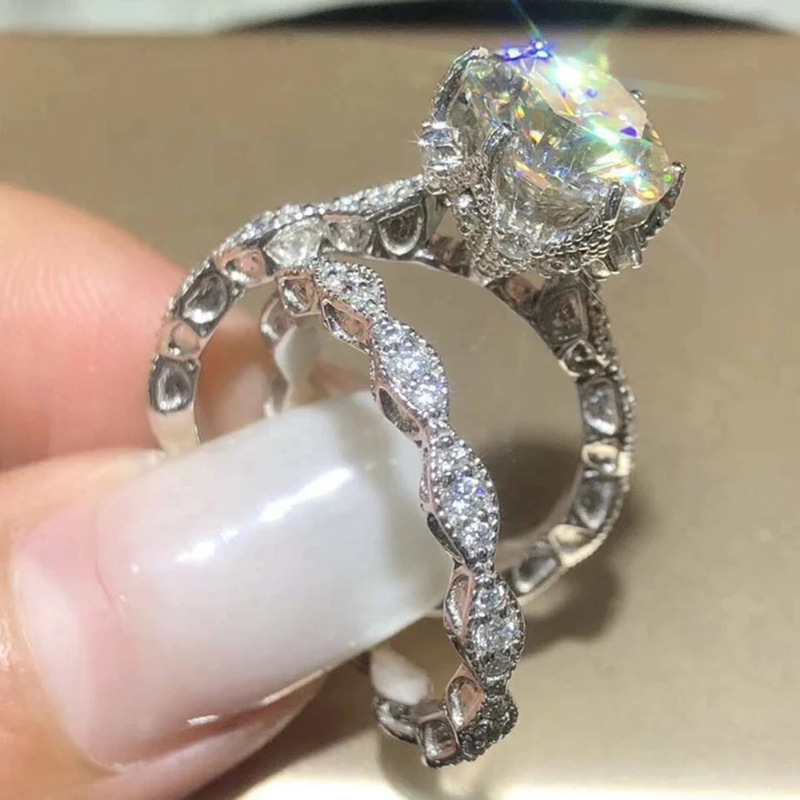 خاتم أنيق من الزركون للنساء للزوجين، خاتم اعتراف زفاف، خاتم شخصية عتيق، خاتم اقتراح كبير جدًا للنساء