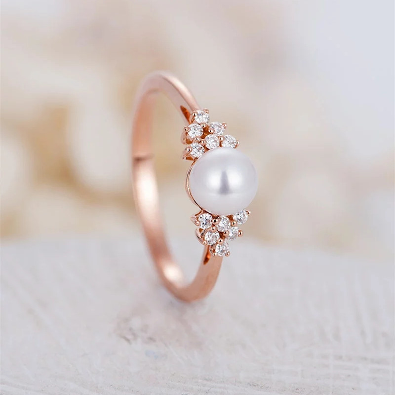 مجوهرات أوروبية وأمريكية رائجة البيع، خاتم لؤلؤ صناعي عصري وبسيط، خاتم خطوبة صغير، مجوهرات يدوية بالجملة