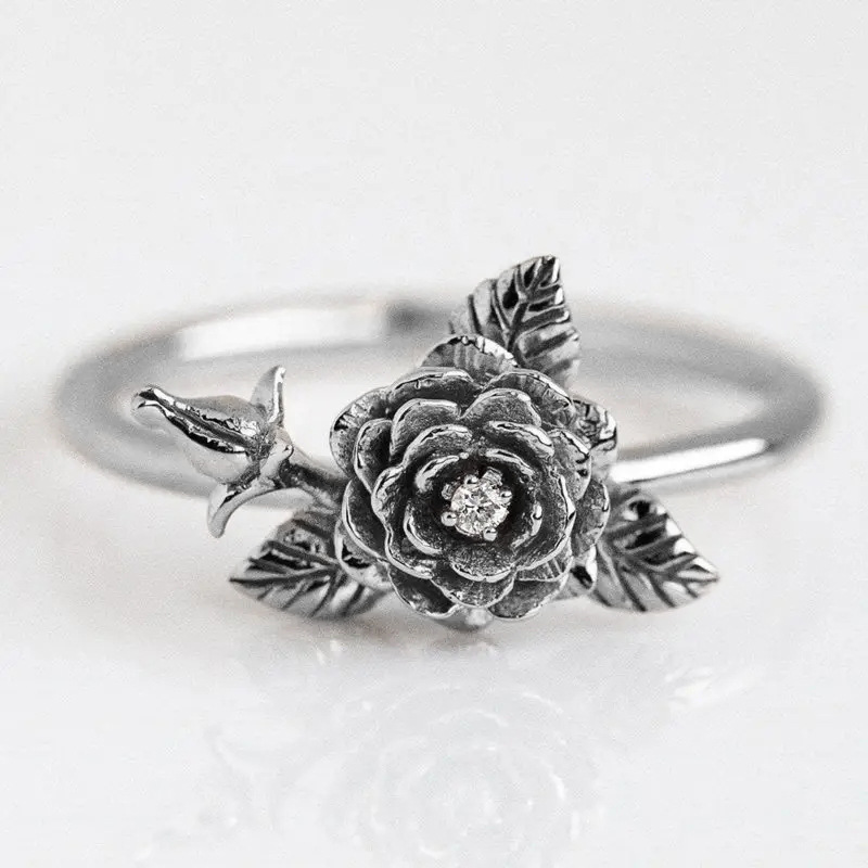 خاتم جديد بتصميم زهرة الأقحوان الداكنة بتصميم كلاسيكي، خاتم مفتوح يناسب جميع الأذواق، خاتم بتصميم مبالغ فيه للسيدات