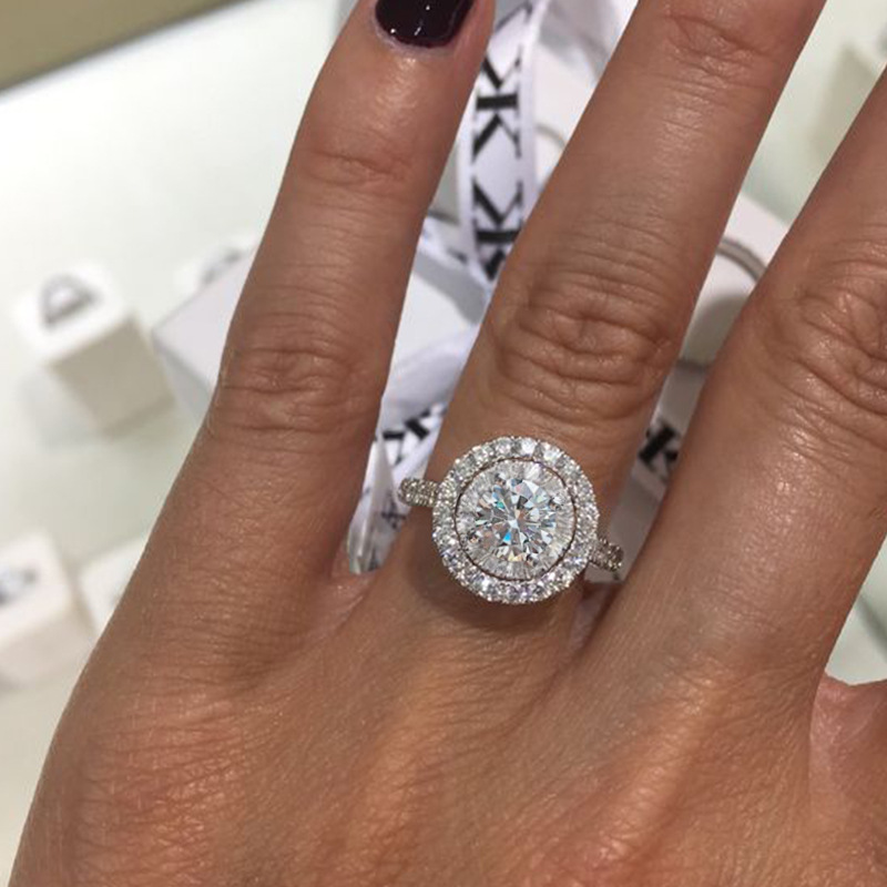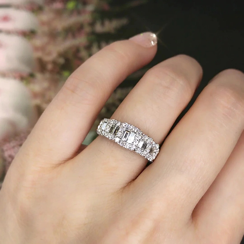 خاتم دائري فاخر مرصع بالكامل للبيع بالجملة بتصميم هندسي خاتم خطوبة زفاف نسائي مجوهرات