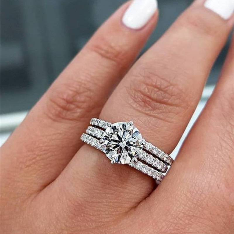 مجموعة خواتم الخطوبة المستديرة الماسية الأكثر مبيعًا للنساء، والخواتم الأوروبية والأمريكية ومجوهرات اليد مبيعات مباشرة بالجملة