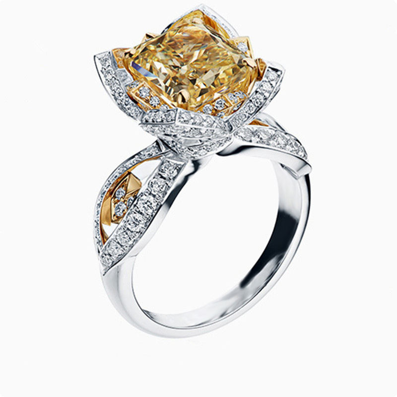 خاتم سبيكة مجوف رائع جديد وعصري للنساء خاتم زركون مربع كبير جدًا أوروبي وأمريكي للبيع بالجملة
