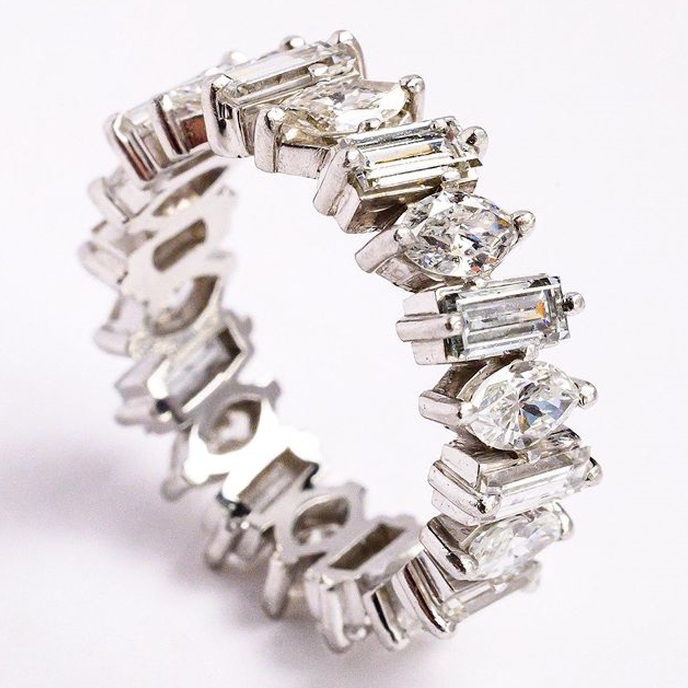 خاتم زفاف نسائي من الألماس المرصع بالزركون المرصع بالألماس بالكامل متعدد الطبقات بتصميم فرنسي رومانسي