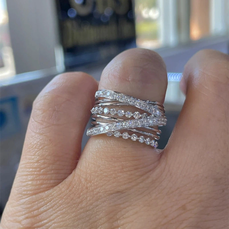 حلقة فلاش فائقة جديدة للبيع متعددة الطبقات تحيط بخط حلقة متقاطعة إبداعية أوروبية وأمريكية حلقة أنثوية
