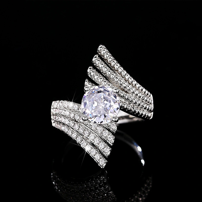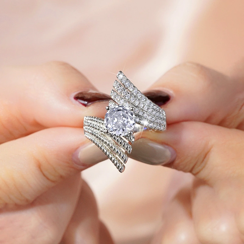 خاتم زفاف كلاسيكي مرصع بالزركون بستة مخالب على الطراز الأوروبي والأمريكي، خاتم فاخر خفيف الوزن، مناسب لجميع المناسبات، مرصع بالزركون بستة مخالب على الطراز الأوروبي والأمريكي