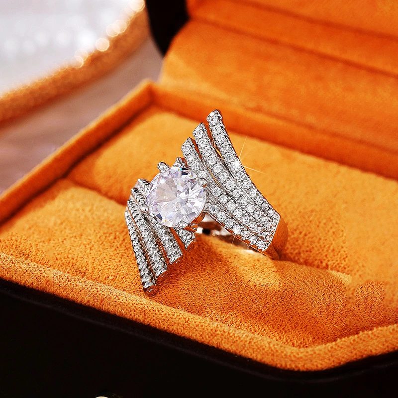 خاتم سماء مرصعة بالنجوم بتصميم نيتش نسائي، خاتم زوجين مليئ بالزركون، خاتم أنثوي عصري رائع بإصبع السبابة