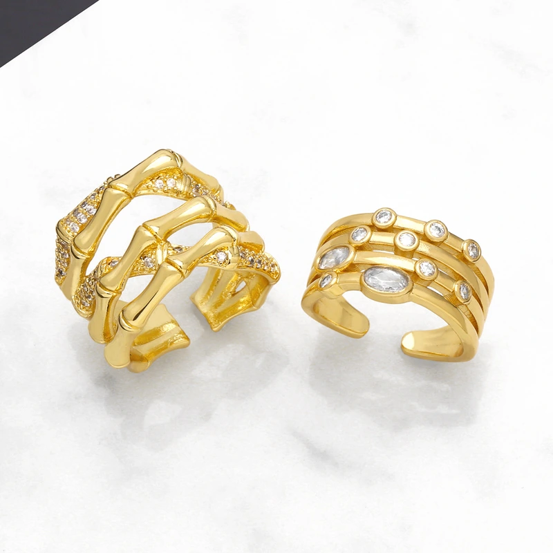 خاتم أجوف مفتوح على الموضة الأوروبية والأمريكية بتصميم نيش نسائي خاتم من الخيزران عالي الجودة قابل للتعديل rim34