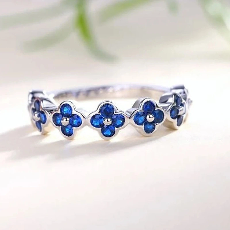 خاتم أزرق الأكثر مبيعًا مع بتلات الزهور ونمط البرسيم رباعي الأوراق، خاتم عصري وشائع على الإنترنت