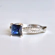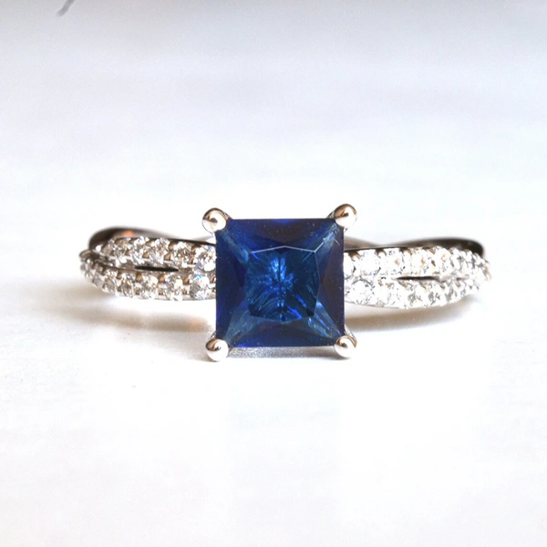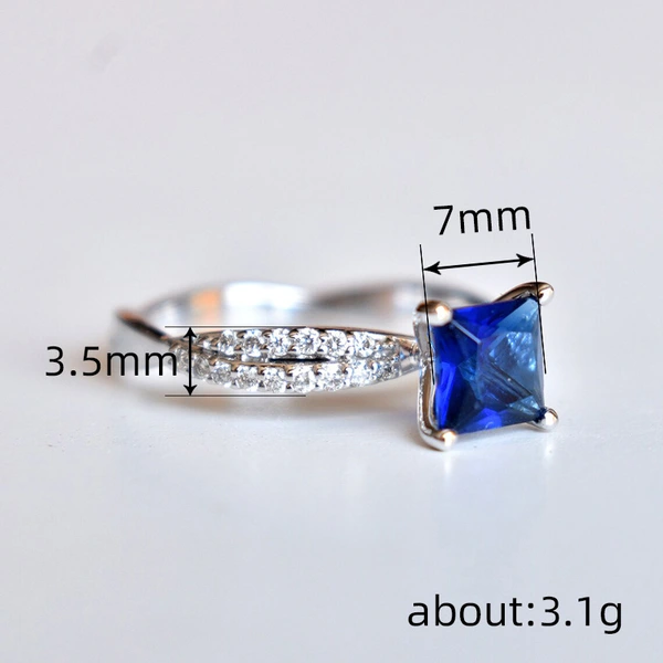 خاتم أزياء شعبي أوروبي وأمريكي خاتم الأميرة المربع الأزرق الملكي والمجوهرات خاتم مموج متقاطع للنساء