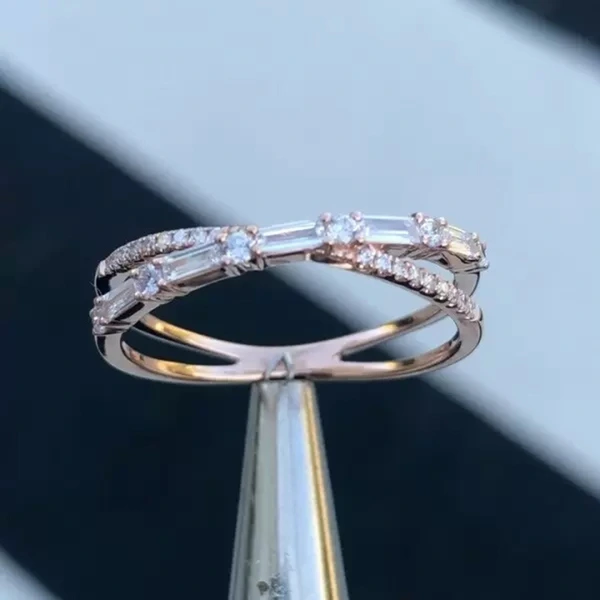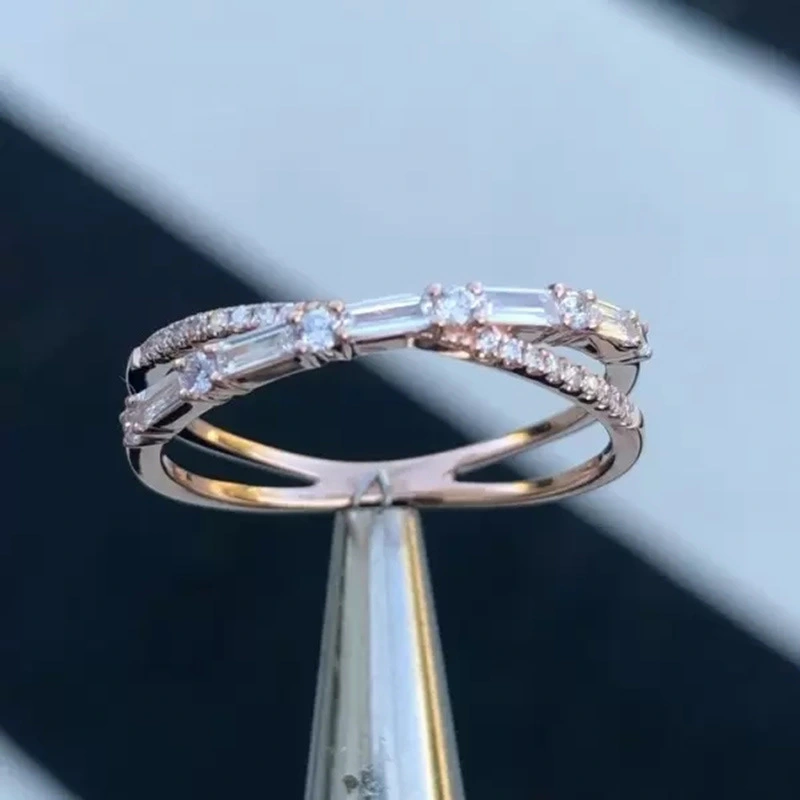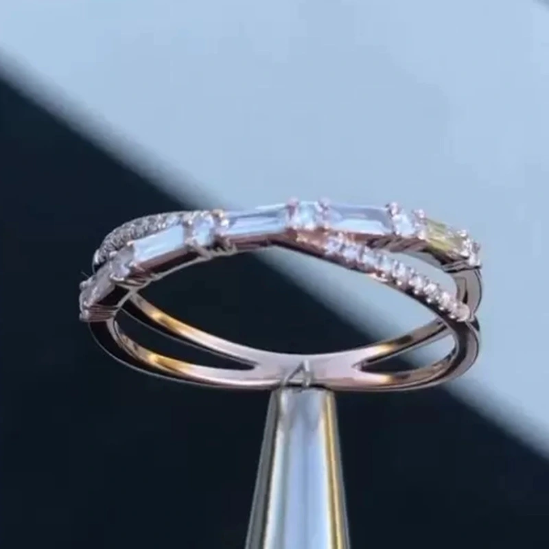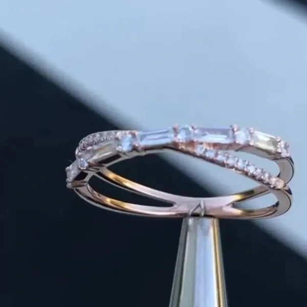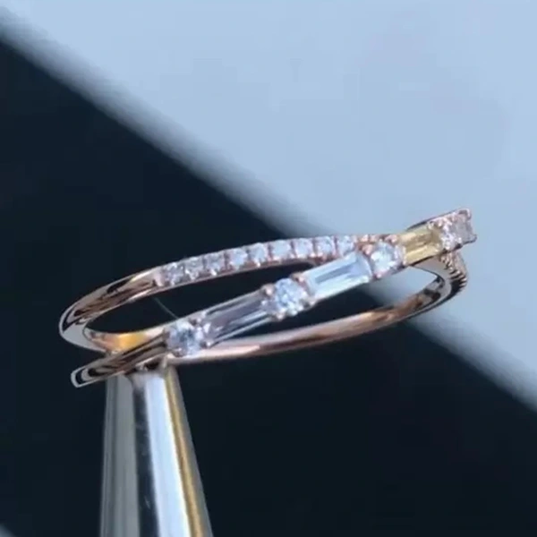 خاتم كلاسيكي مرصع بأحجار الزركون المقلد بأربعة مخالب للنساء، خاتم ذراع ملتوي مزدوج اللون، خاتم خطوبة وزواج للنساء