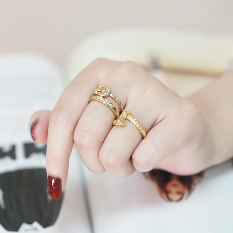 خاتم بتصميم أوروبي وأمريكي فاخر، خاتم عصري من الزركون على شكل عين الحصان، خاتم إصبع السبابة بتصميم مجوف متعدد الطبقات