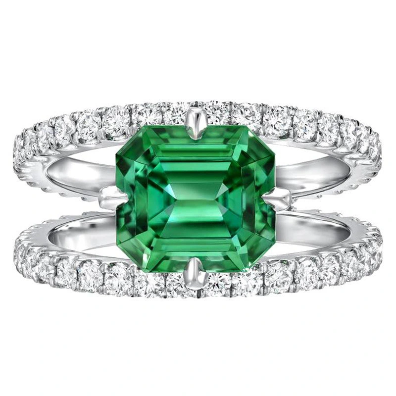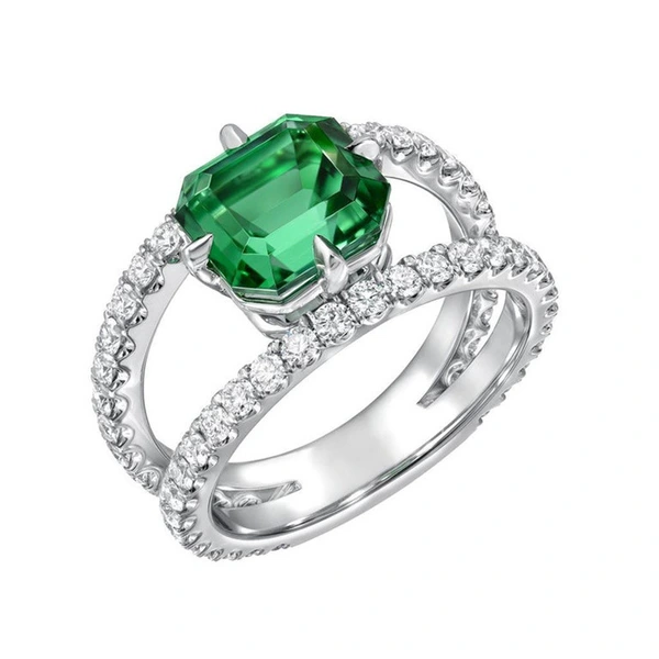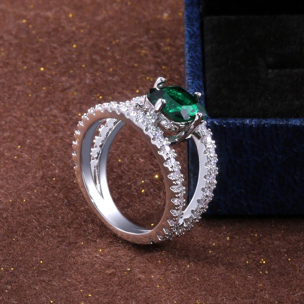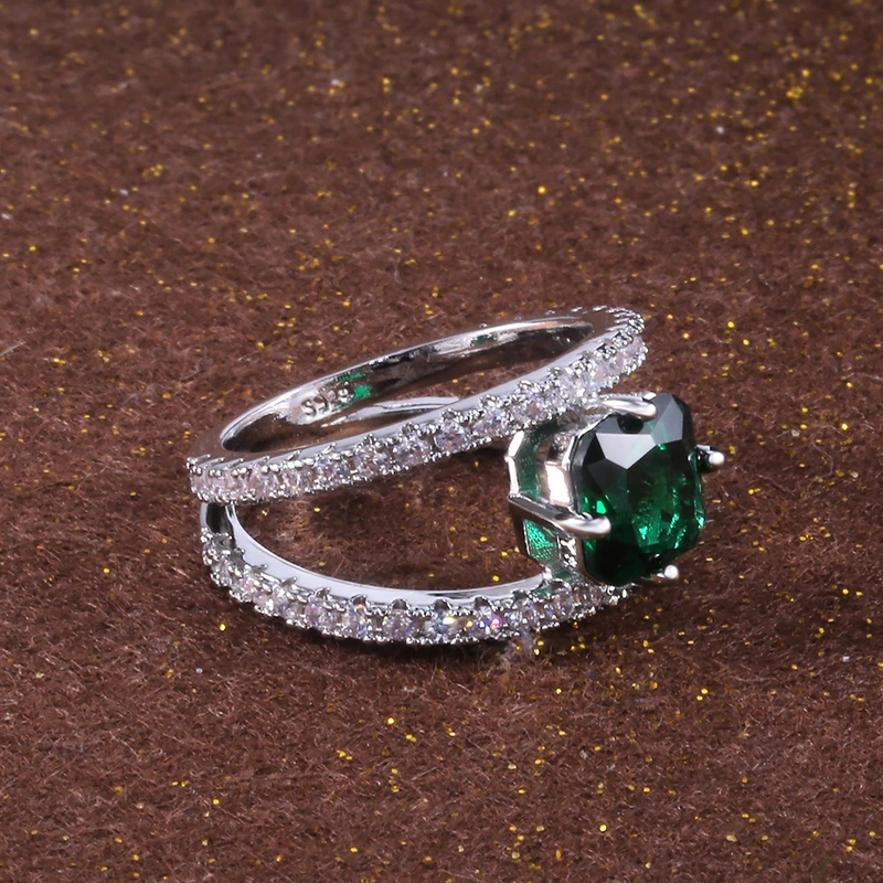 خاتم ألماس أخضر مرصع بالزركون الأبيض مطلي بالنحاس من المجوهرات الأوروبية والأمريكية الشهيرة للنساء مجوهرات رائعة للزوجين
