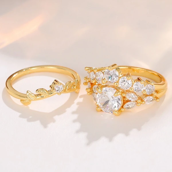 خاتم ألماس بسيط للنساء، خاتم عصري وشخصي، مجموعة خواتم مميزة، طقم خواتم على الطراز البريطاني القديم مكون من مجموعتين من الخواتم
