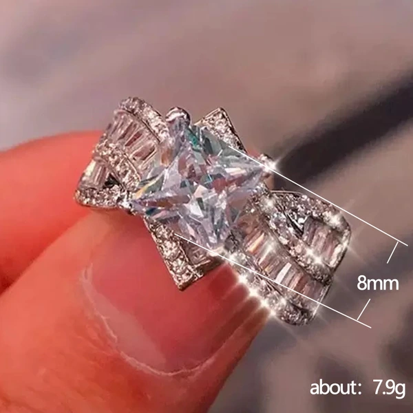 خاتم الأميرة المربع الجديد الأكثر مبيعًا على الطراز الأوروبي والأمريكي المرصع بالزركون مجوهرات نسائية خاتم خطوبة وزواج