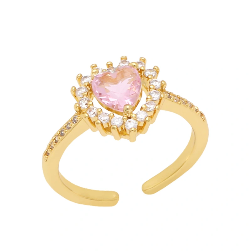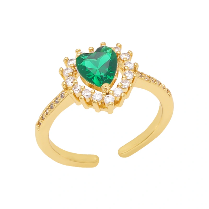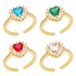 خاتم ألماس جديد على شكل قلب هندسي أوروبي وأمريكي، خاتم زركون لامع ملون، خاتم نسائي rip74