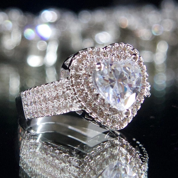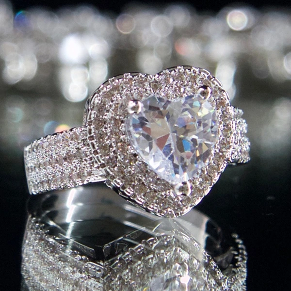 خاتم ألماس عصري أوروبي وأمريكي، خاتم رائع على شكل قلب الحب، خاتم نسائي فائق الوميض من الزركون، إكسسوارات خاتم السيدات