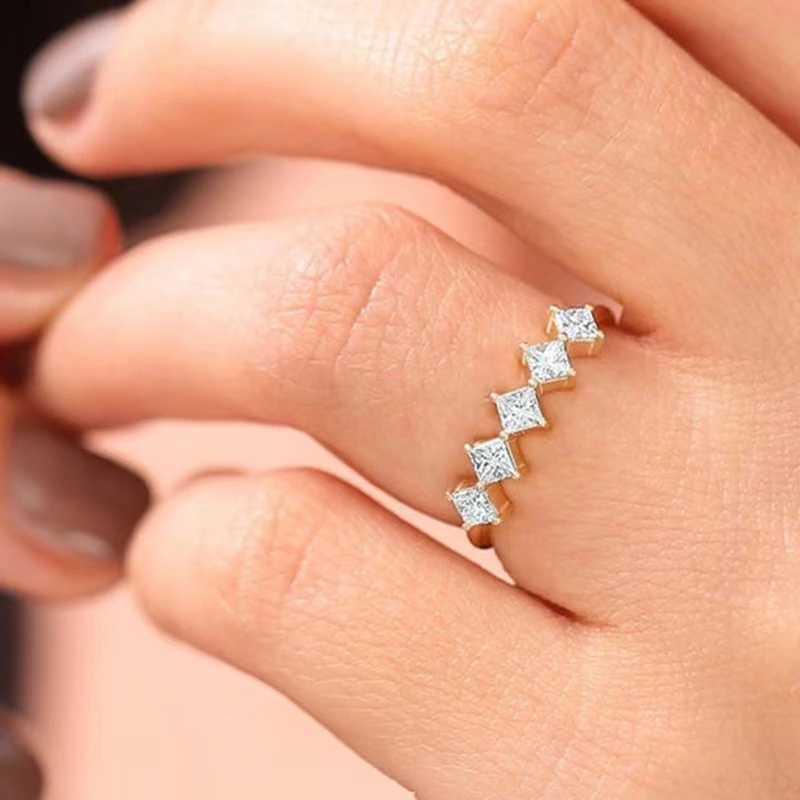 خاتم الأميرة المربع الجديد الأكثر مبيعًا على الطراز الأوروبي والأمريكي المرصع بالزركون مجوهرات نسائية خاتم خطوبة وزواج