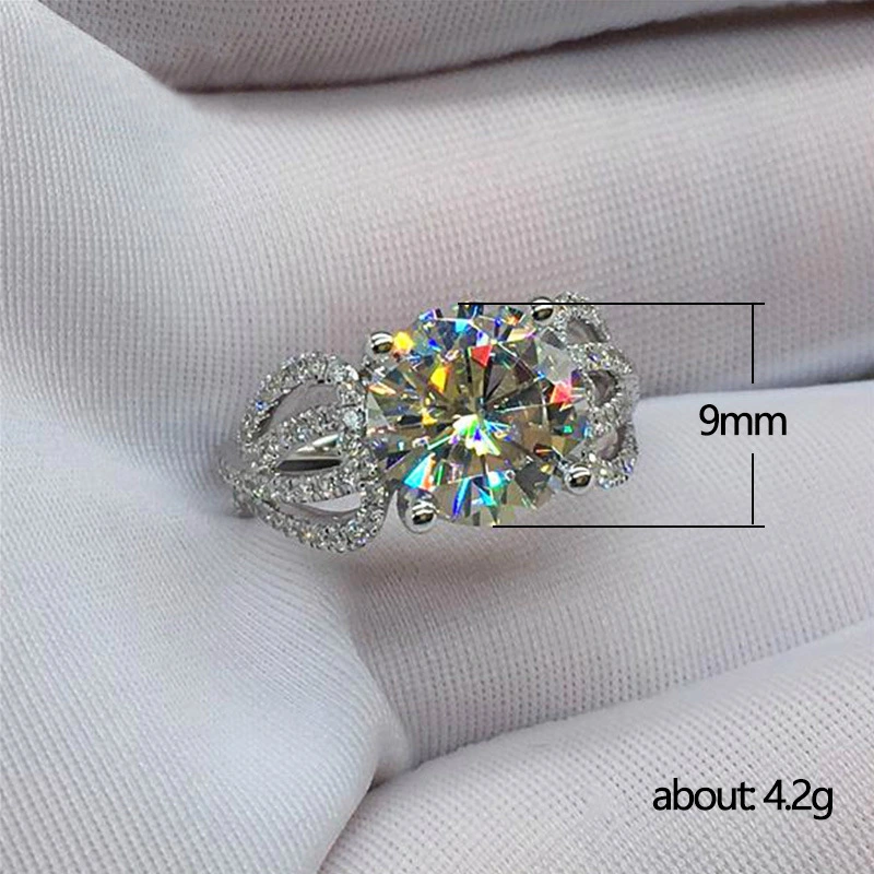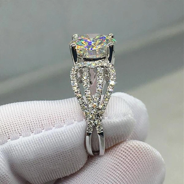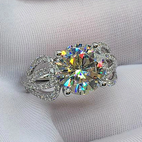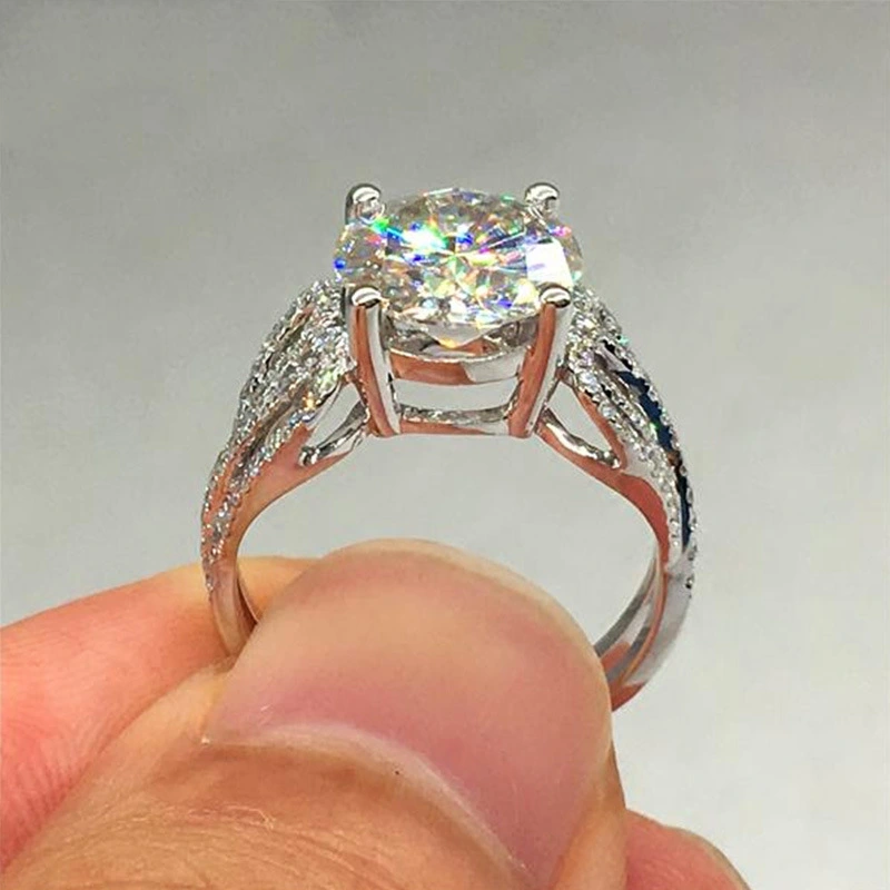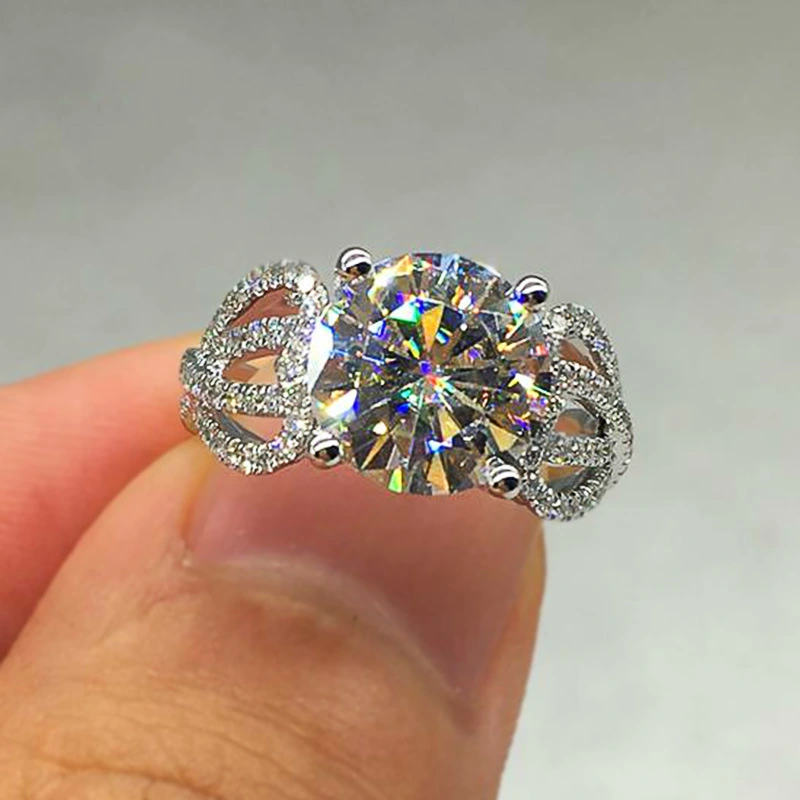 خاتم ألماس فاخر جديد كلاسيكي بأربعة مخالب للنساء مليء بالألماس وخاتم طلب الزواج من الزركون