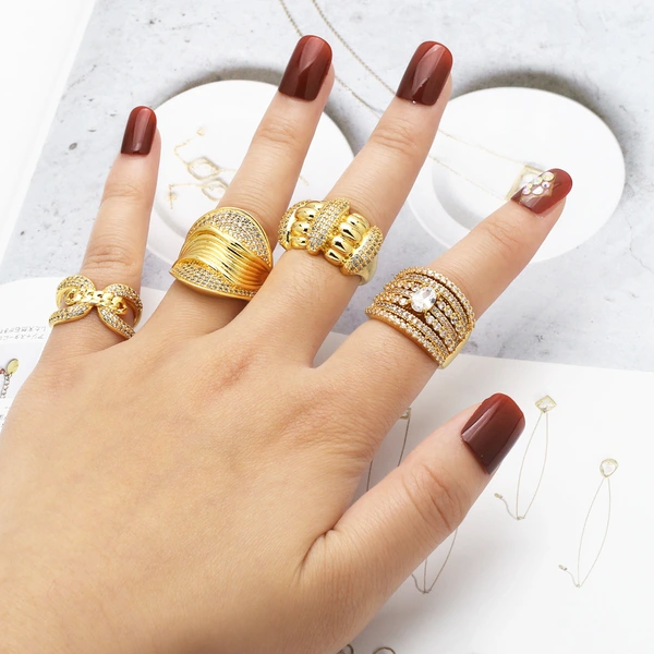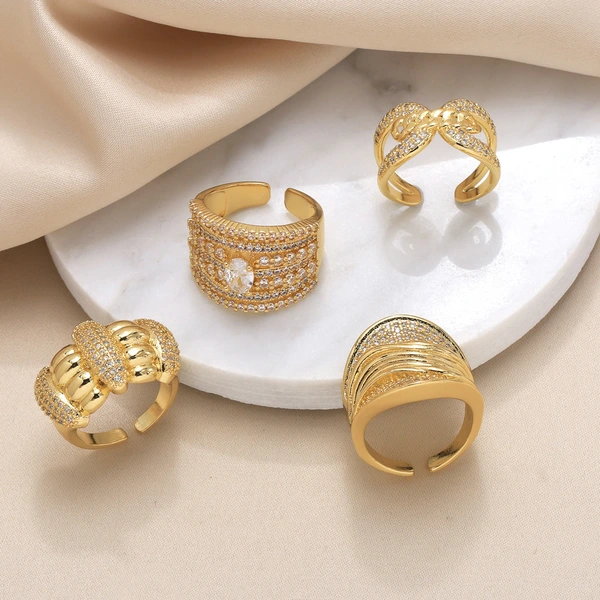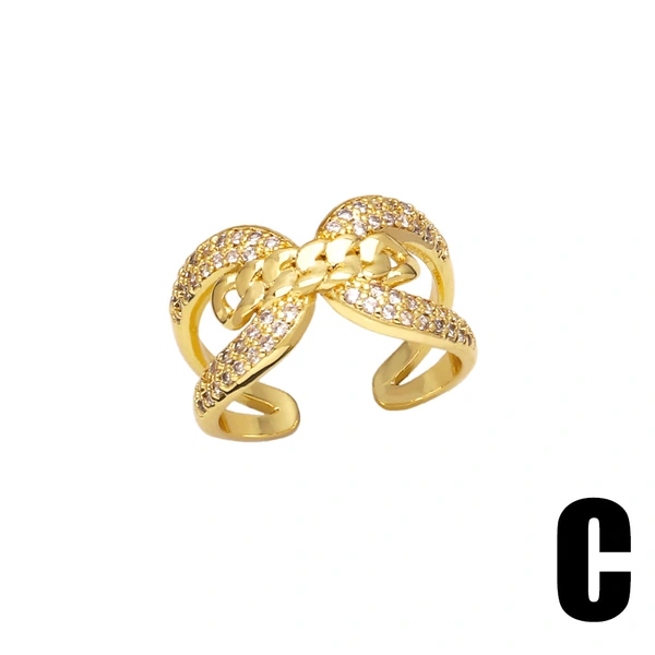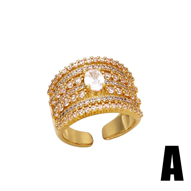 خاتم ألماس كامل عصري للبيع الساخن للنساء خفيف فاخر عالي الجودة مطلي بالذهب خاتم مفتوح غير منتظم rir02