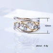 خاتم كلاسيكي مرصع بأحجار الزركون المقلد بأربعة مخالب للنساء، خاتم ذراع ملتوي مزدوج اللون، خاتم خطوبة وزواج للنساء