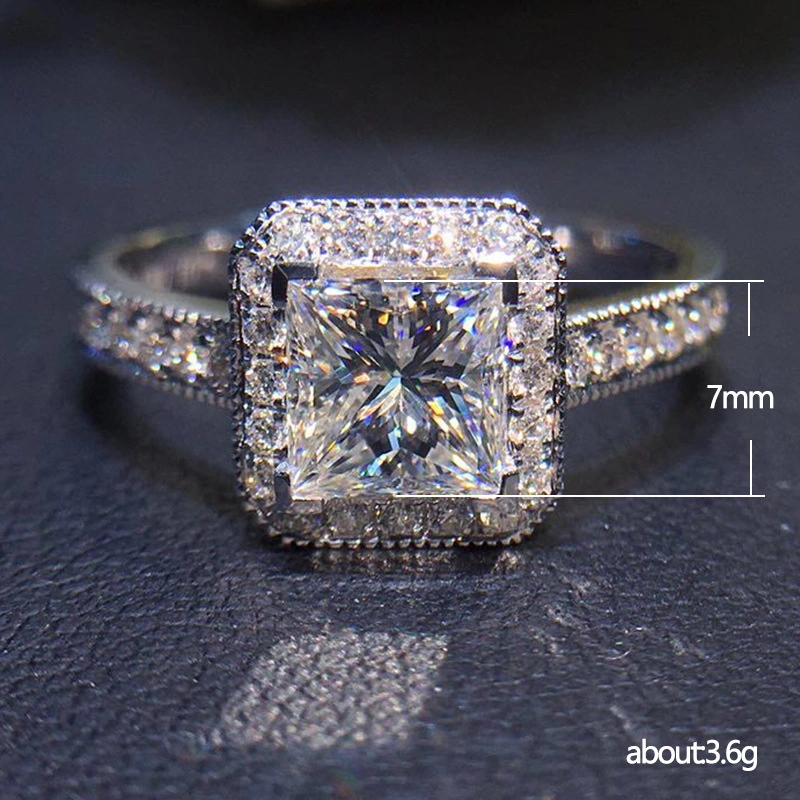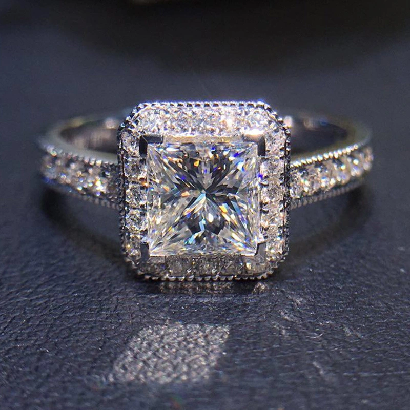 خاتم الأميرة المربع الجديد الأكثر مبيعًا على الطراز الأوروبي والأمريكي المرصع بالزركون مجوهرات نسائية خاتم خطوبة وزواج