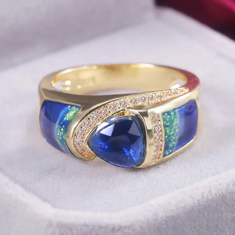 خاتم ألماس مرصع بالزركونيوم وأحجار كريمة زرقاء أوروبية وأمريكية رائج البيع بتصميم عتيق مجوهرات
