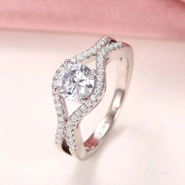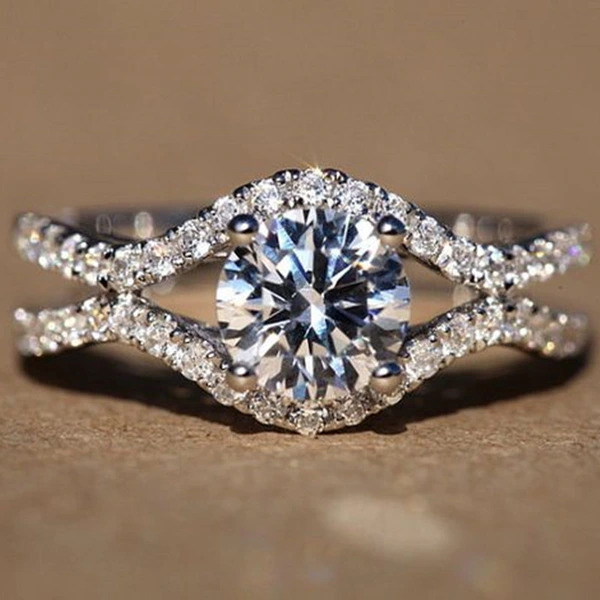 خاتم كلاسيكي مرصع بأحجار الزركون المقلد بأربعة مخالب للنساء، خاتم ذراع ملتوي مزدوج اللون، خاتم خطوبة وزواج للنساء