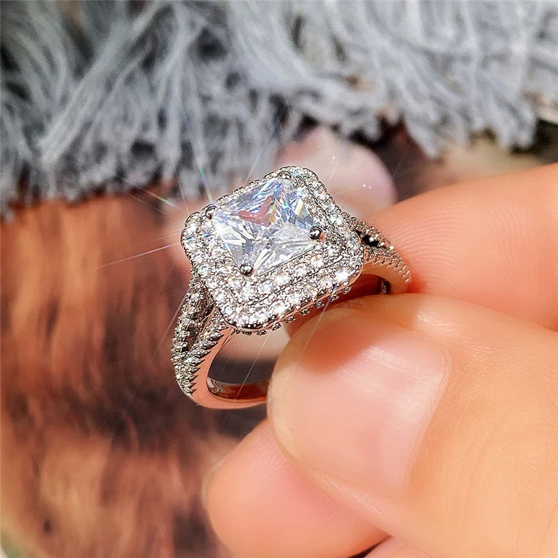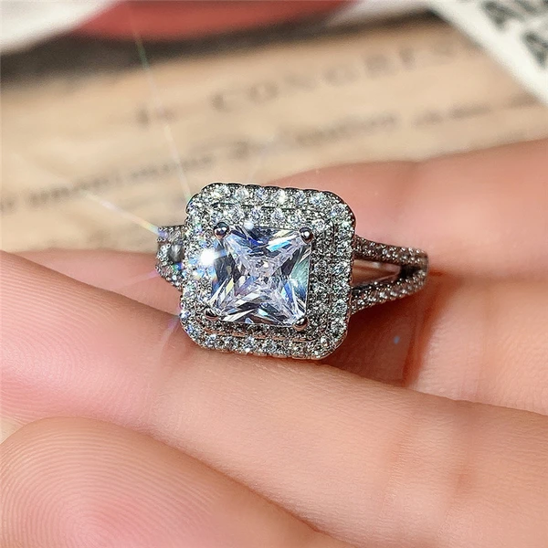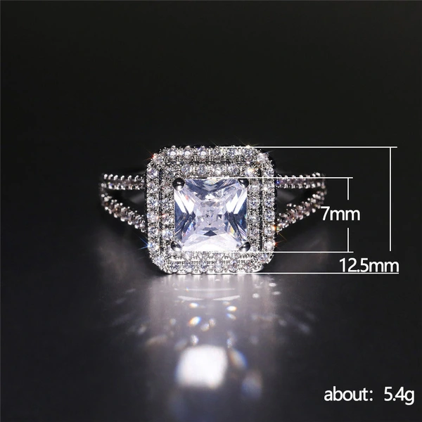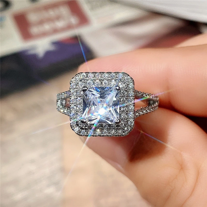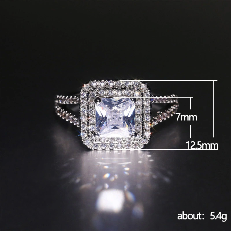 خاتم الأميرة المربع الجديد الأكثر مبيعًا على الطراز الأوروبي والأمريكي المرصع بالزركون مجوهرات نسائية خاتم خطوبة وزواج