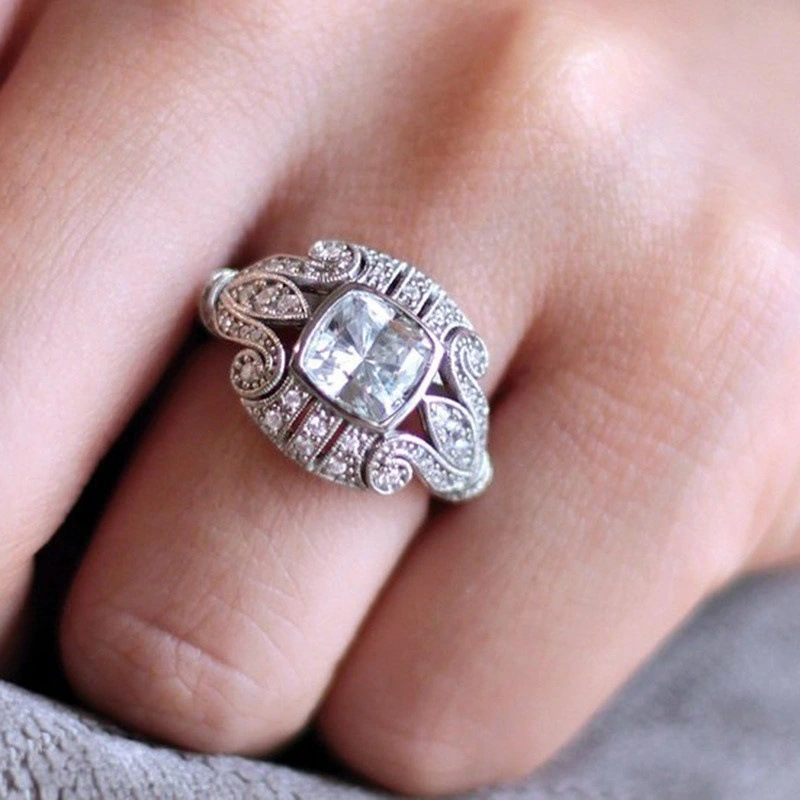 خاتم الأميرة المربع الجديد الأكثر مبيعًا على الطراز الأوروبي والأمريكي المرصع بالزركون مجوهرات نسائية خاتم خطوبة وزواج