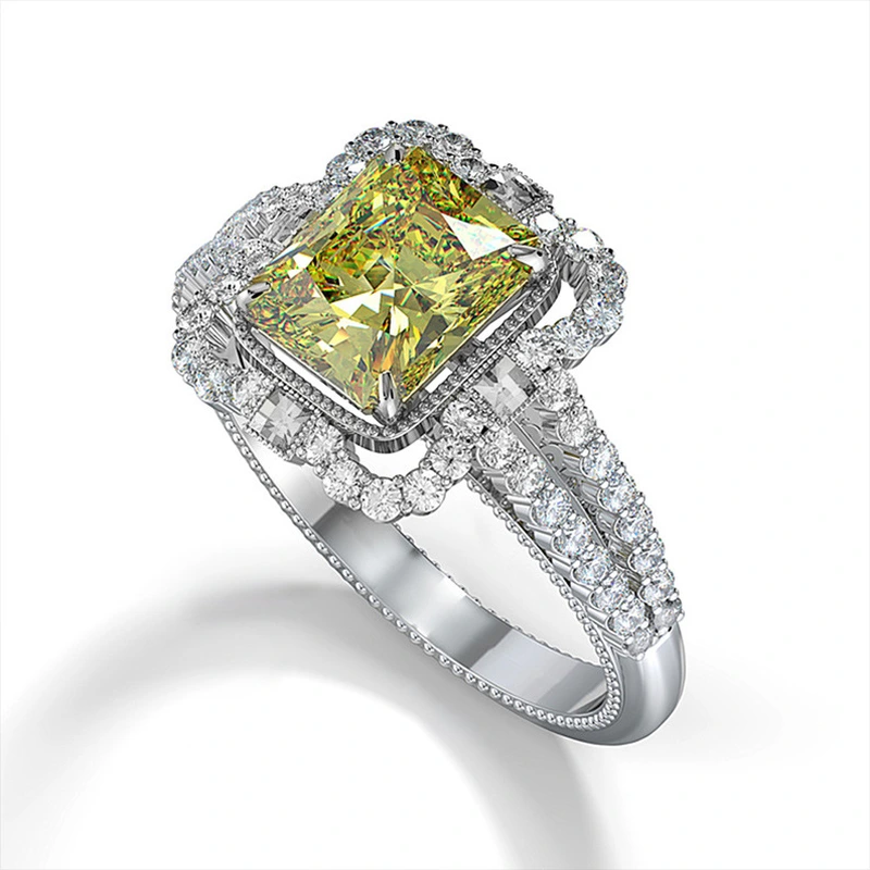 خاتم الأميرة المربع الجديد الأكثر مبيعًا على الطراز الأوروبي والأمريكي المرصع بالزركون مجوهرات نسائية خاتم خطوبة وزواج