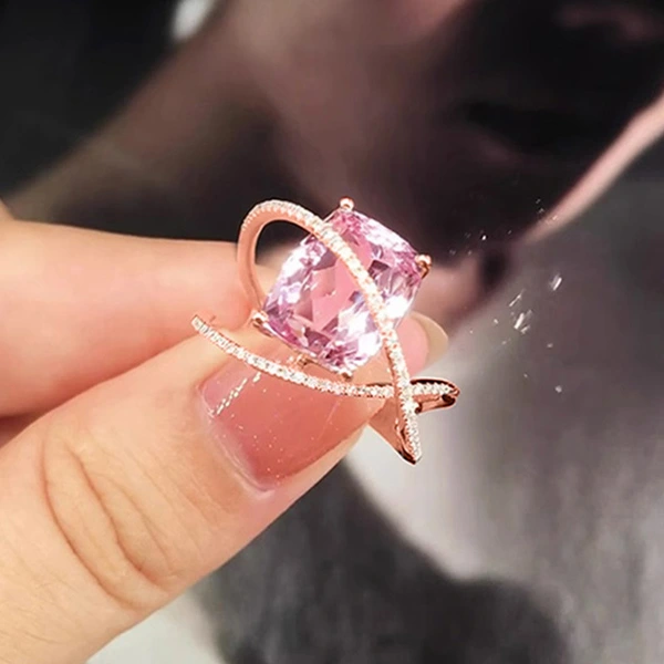 خاتم ألماس وردي حلو ورائع على طراز المشاهير للنساء، خاتم متلألئ مرصع بالزركون الهندسي، خاتم فردي بتصميم أنيق