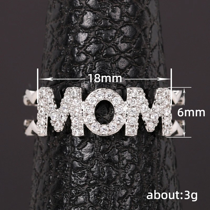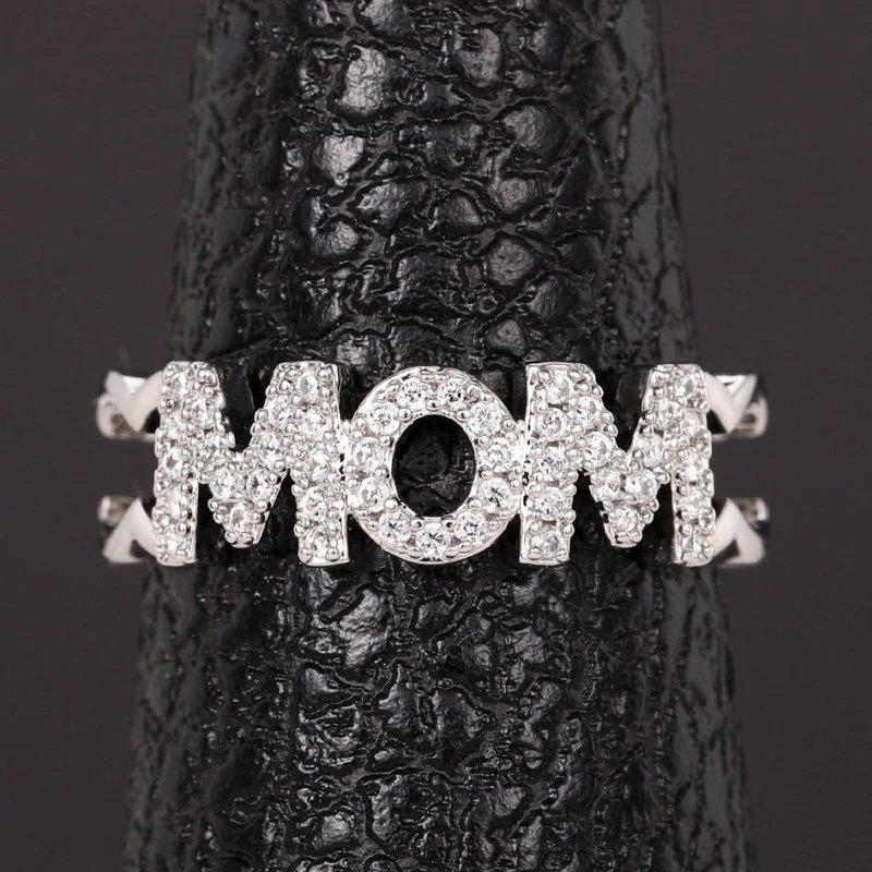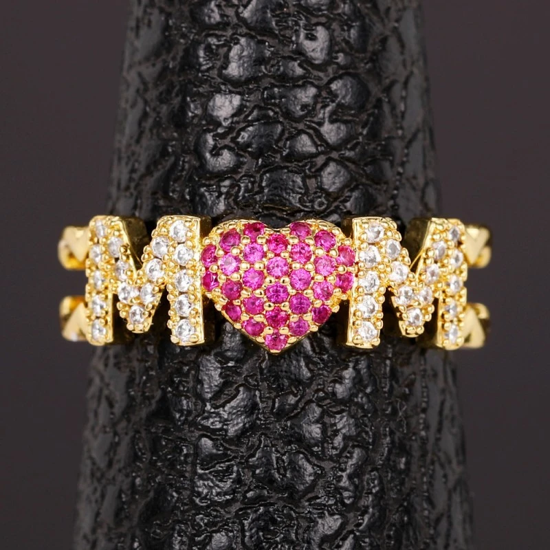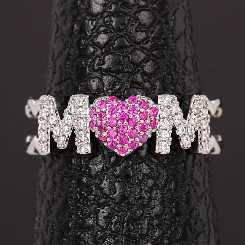 خاتم أم مرصع بالأحجار الكريمة على شكل قلب، خاتم مفتوح وقابل للتعديل، هدية أنيقة لعيد الأم، هدية رأس السنة الجديدة