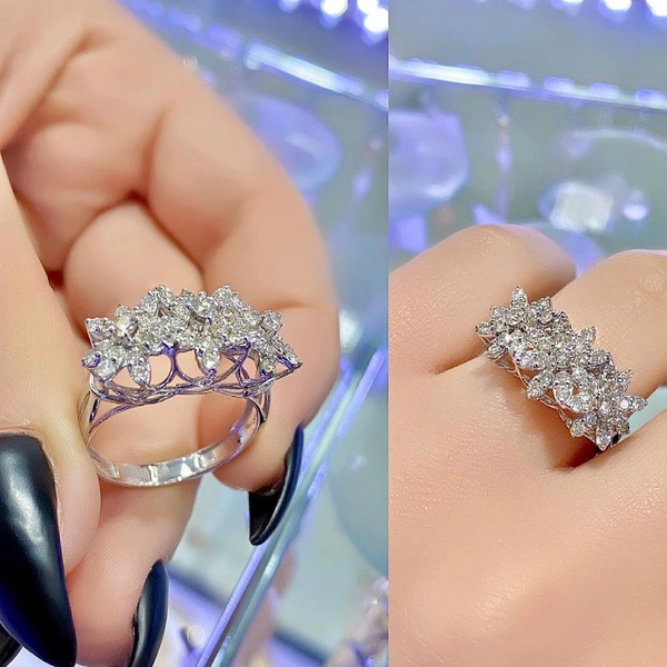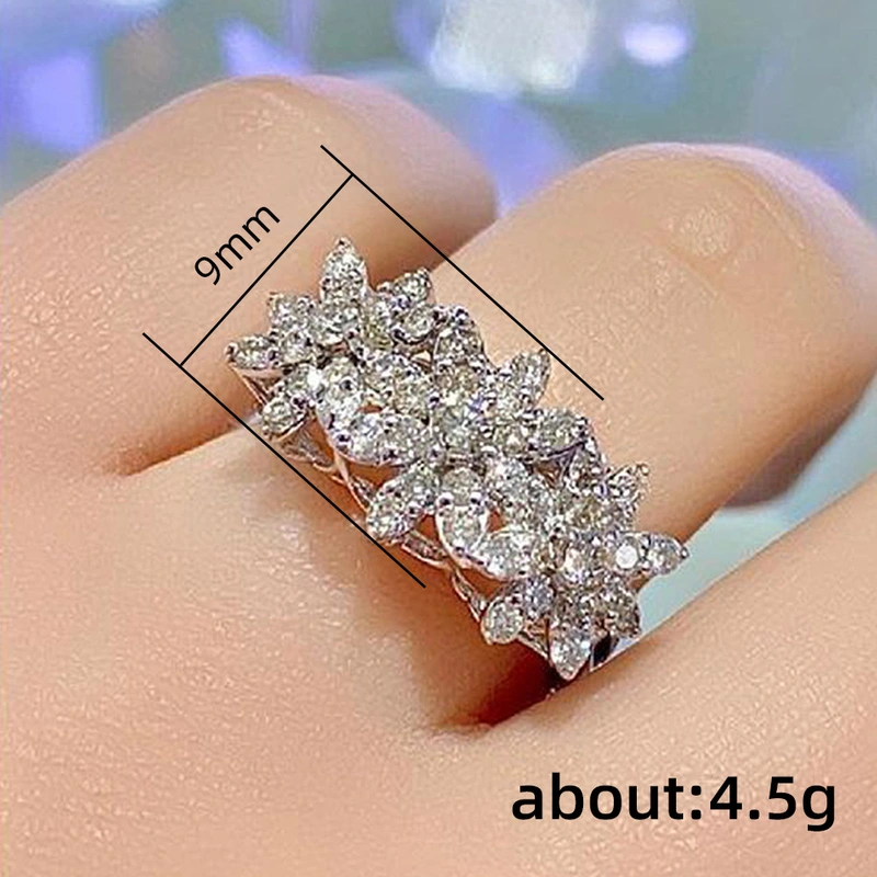 خاتم أنيق من الزركون الماسي الكامل على شكل زهرة من مجوهرات المشاهير على الإنترنت، خاتم خفيف فاخر يناسب جميع الأذواق بمقاسات مختلفة للإصبع السبابة